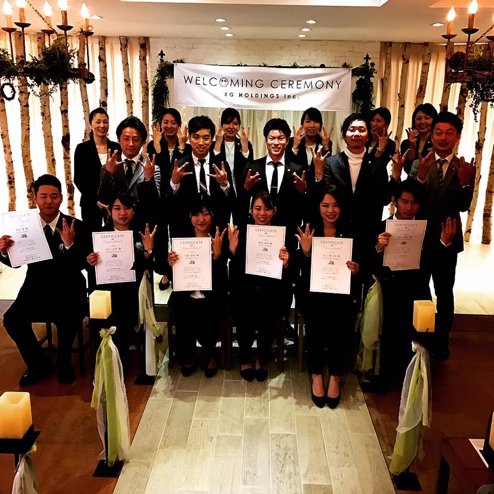 先日は8G HOLDINGS レストランブライダルTEAMの入社式でした。 素敵な仲間が増えました。 がんばりましょう! http://8gholdings.com/
